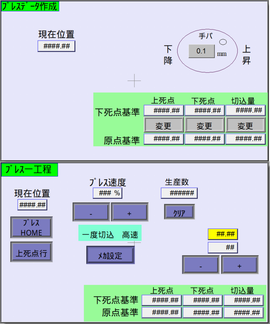 - プレスを2回連続にて切込み設定が可能です。また切込みの速度を高速並びに低速と選択する事が可能で、さらに交互による連続切込み設定が可能です。